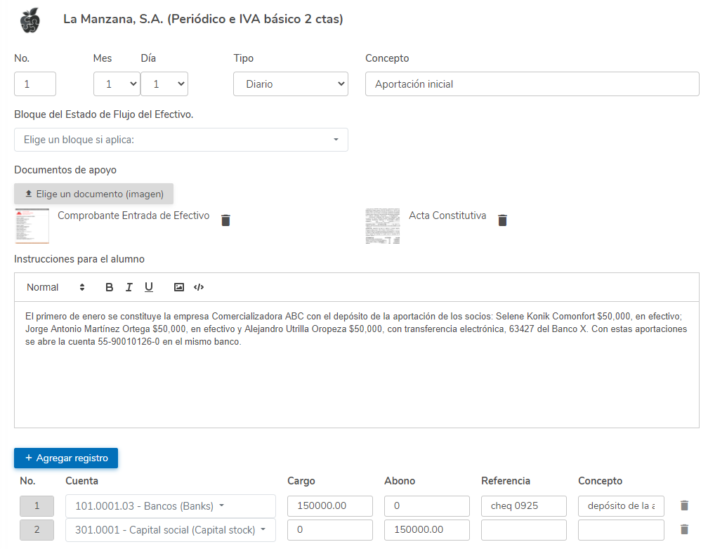 Real accounting platform to simulate a day to day record registration to help the students learn